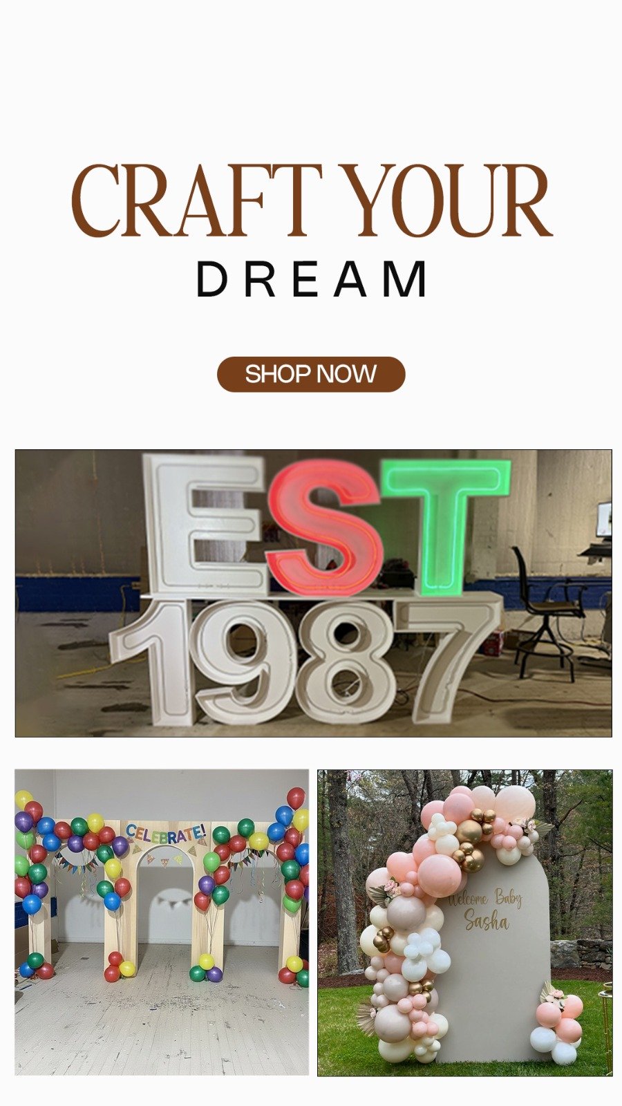 Event props weddings, exhibitions, launches Decorative and creative installations Retail cafe and display props
