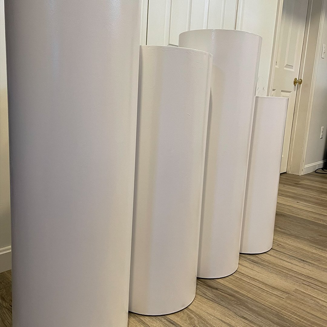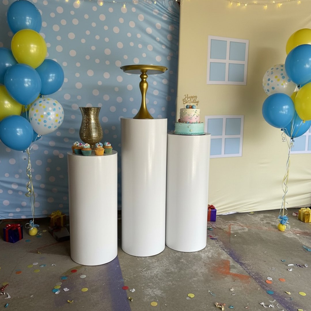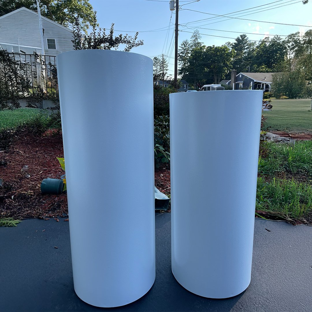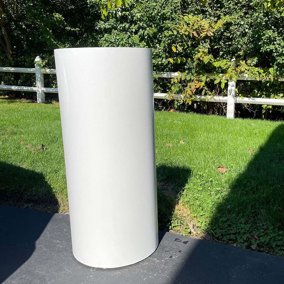 A stylish Ripple Round Pedestal featuring a unique ripple design, perfect for displaying decor, floral arrangements, or art pieces. Measuring 35″ H × 16″ diameter, it adds elegance and a modern touch to any event, home, or exhibition setup.